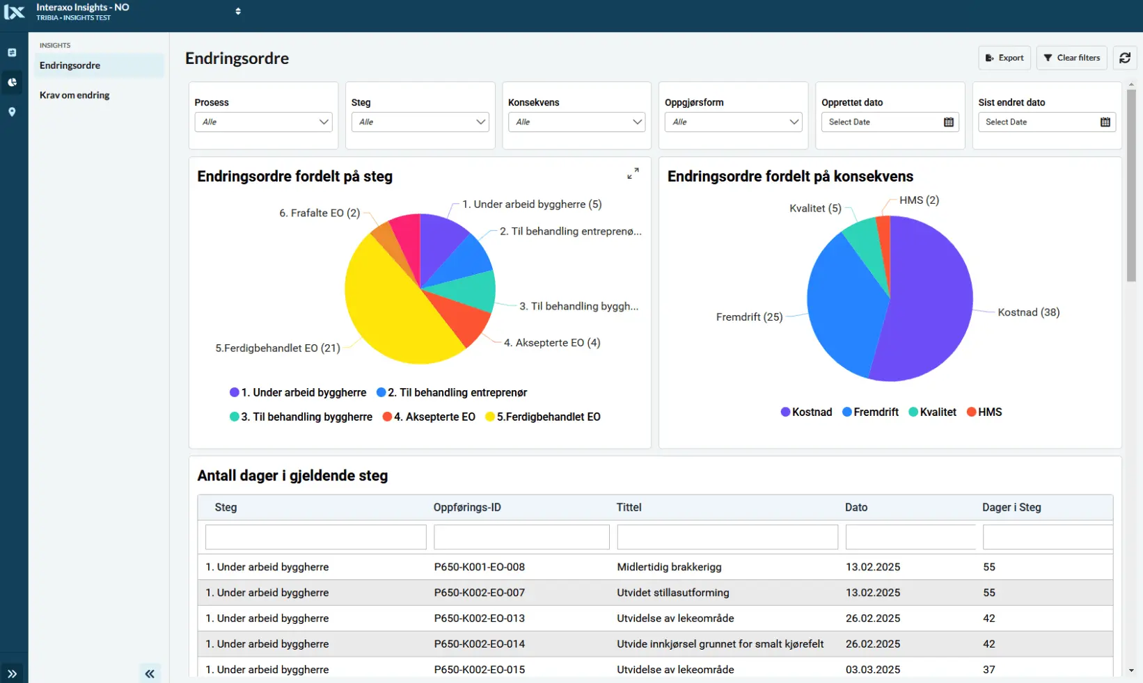 Interaxo Insights transforms complex project data into clear, visual overviews. With a deeper understanding and greater control, you can make faster, more secure, and better-informed decisions – while also keeping the project on track and within budget.