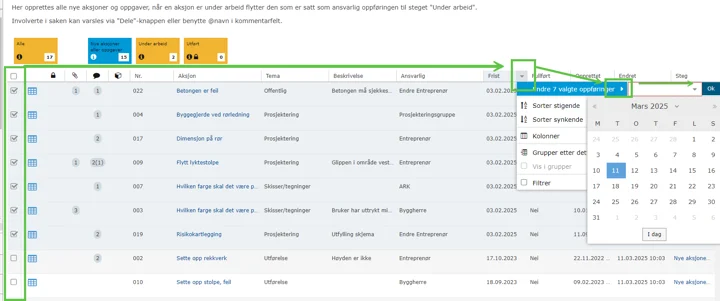 Har du mange oppføringer som trenger en oppdatering? Når flere oppføringer skal endres samtidig – som for eksempel oppdatering av en verdi i et valglistefelt, endring av tidsfrister eller overføring av oppgaver mellom prosjektmedlemmer – kan det bli tidkrevende å gjøre dette manuelt, felt for felt. Uansett hvilken type oppdatering som kreves, må prosessen ofte gjentas for hver oppføring; enten ved å åpne hver enkelt, endre verdien, lagre, og deretter gå videre til neste – eller ved å dobbeltklikke på feltet fra sammendragssiden og skrive inn den nye verdien.
