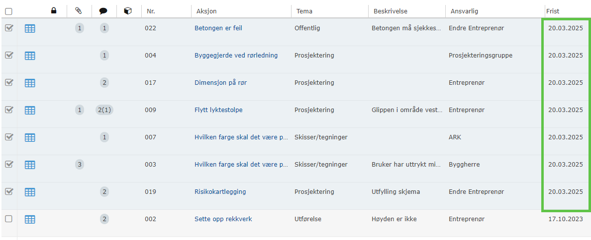 • Endring av tidsfrister som må justere for flere oppføringer samtidig.