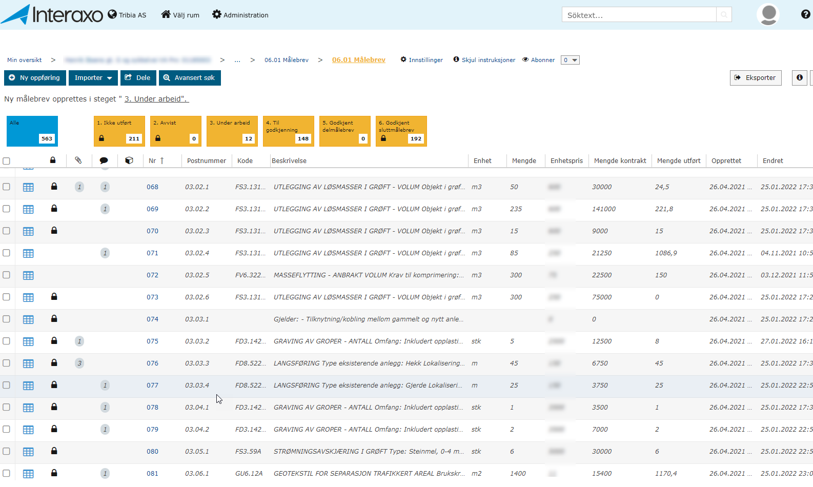 «Målebrevsdatabasen er det viktigste når det gjelder gjennomføring av prosjektet, med tanke på et effektivt og raskt sluttoppgjør. I alle fall fra byggelederens side,» forteller Svein Erik. For å skape en oversiktlig og ryddig oppføring anbefaler han at hver post med målbare mengder skal dokumenteres med relevante vedlegg i respektive poster i målebrevsdatabasen i Interaxo. Dette tar kanskje litt ekstra tid, men sikrer en verdifull og tidsbesparende struktur som man får mye igjen for senere.